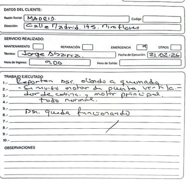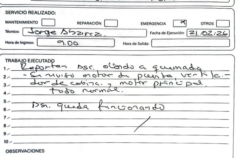 Reportar cualquier sonido extraño o interrupción del servicio de inmediato.