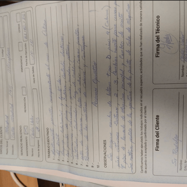 Recomendaciones del técnico: