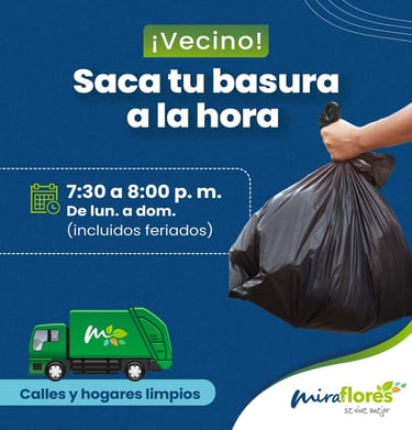 La basura se saca todos los días de 7:30 a 8:00 pm, en bolsas cerradas. Esto evita olores y mantiene el edificio limpio para ti y tus vecinos.