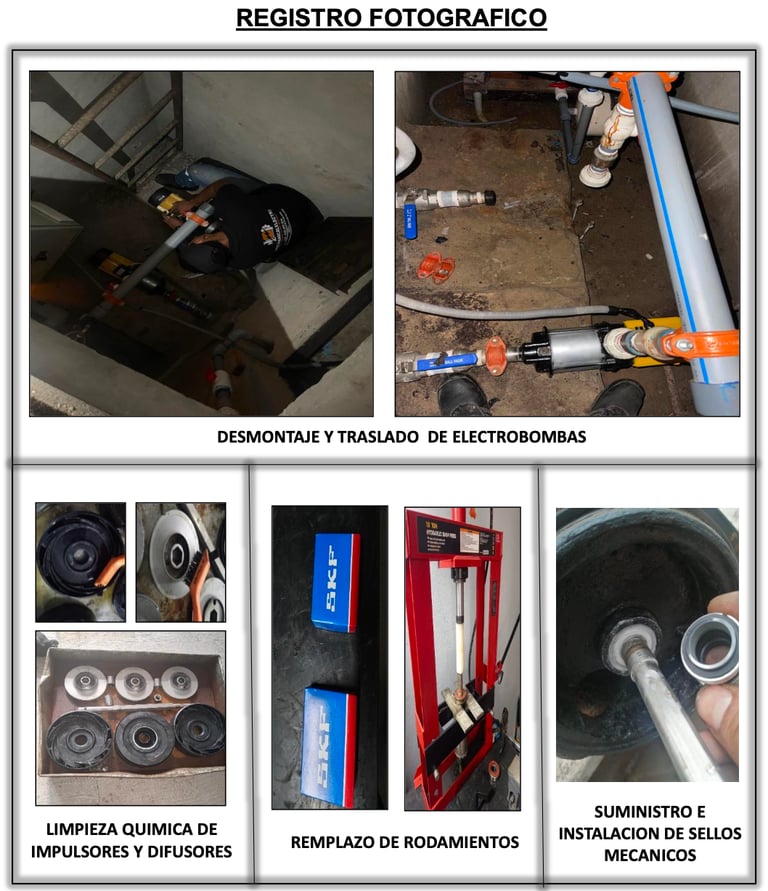Mantenimiento completo de las dos electrobombas, asegurando su óptimo rendimiento.